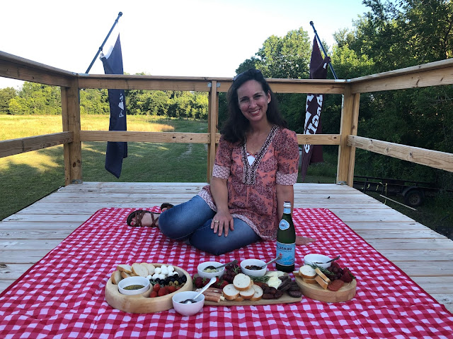 We enjoyed our charcuterie board away from home so I packed up all the cold items in a little soft sided cooler and placed my boards, serving utensils, and jars in a crate.